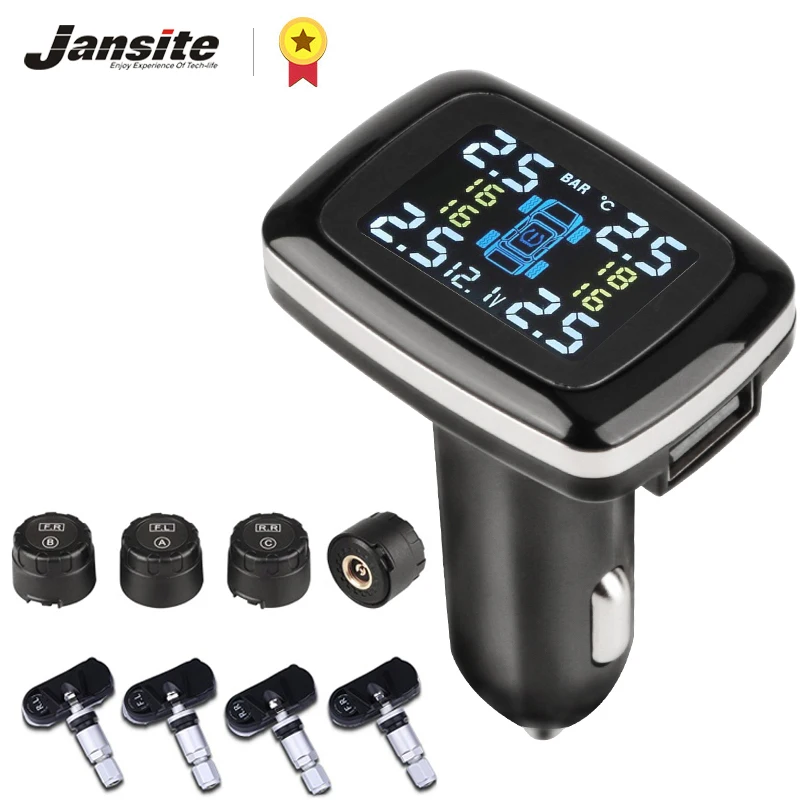 Jansite Автомобильная TPMS сигнализация для шин Система контроля давления датчики прикуривателя USB порт система охранной сигнализации s давление в шинах