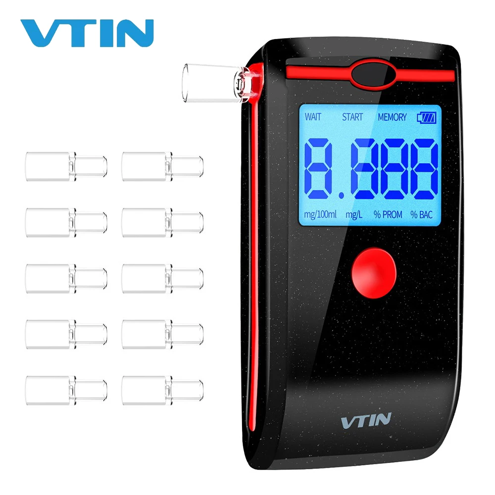 VTIN перезаряжаемый Алкотестер для дыхания Портативный ЖК-Алкотестер с дисплеем Профессиональная точность Алкотестер с 10 шт. мундштук
