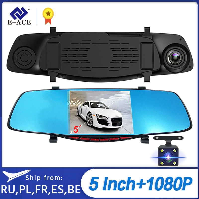 E-ACE Видео Registratory Full HD 1080 P Автомобильный Видеорегистратор Камера Avtoregistrator Зеркало Заднего Вида Цифровой Видео Рекордер с Двумя Объективами Т...