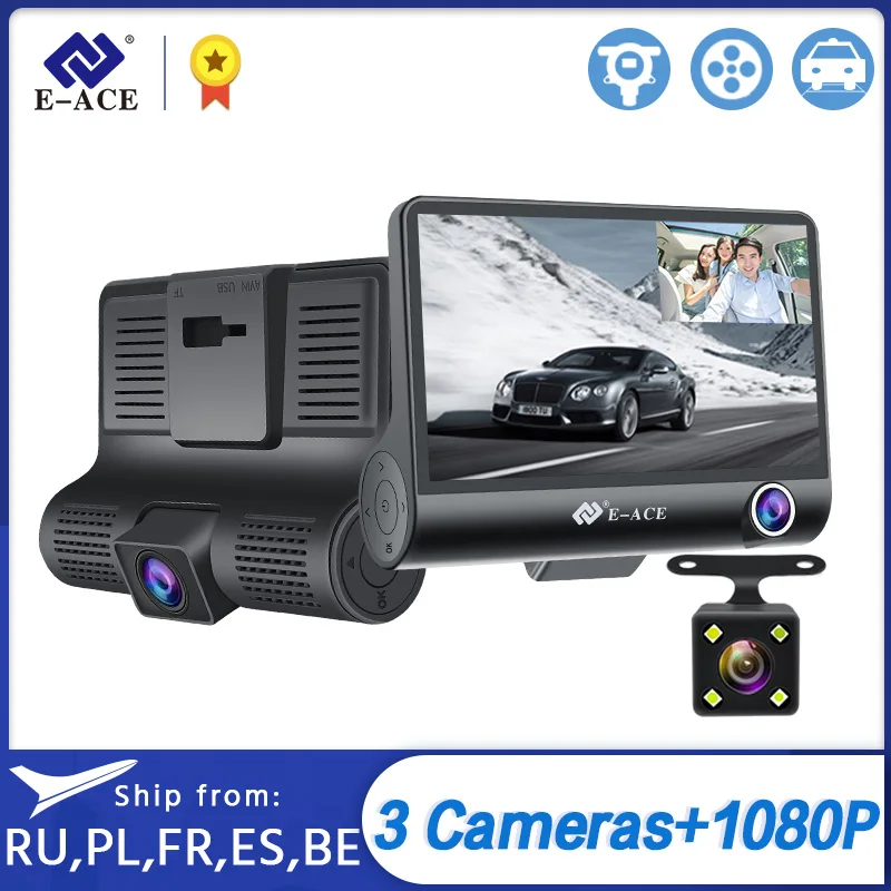 E-ACE 4,0-дюймовый видеорегистратор FHD 1080P Dashcam с тремя объективами, видеорегистратор с камерой заднего вида, Автомобильный видеорегистратор
