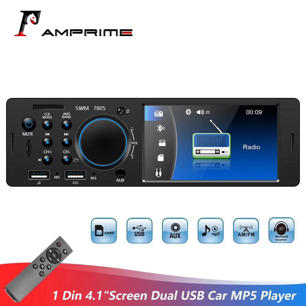AMPrime 1Din Авторадио 4,1 "TFT стерео радио Bluetooth FM радио двойной USB/AUX/пульт дистанционного управления аудио MP4 MP5 мультимедийный плеер