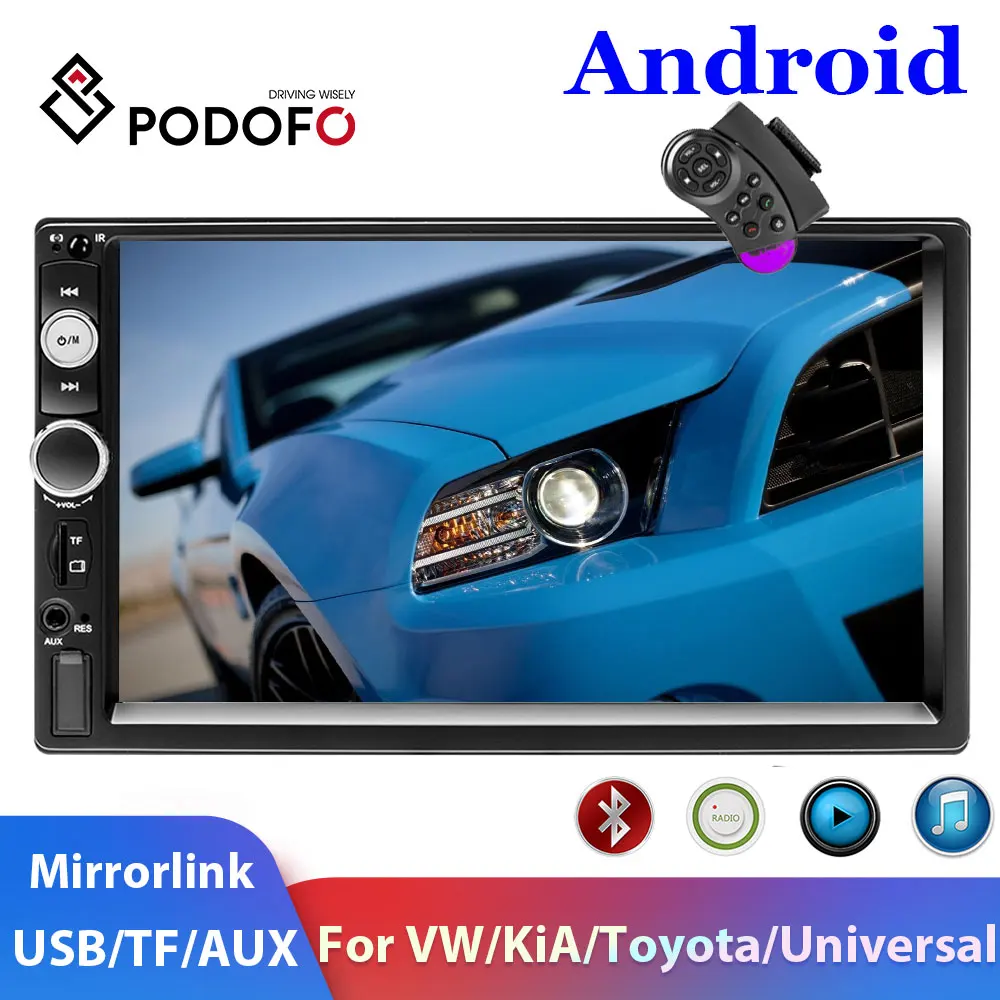Podofo 2 Дин Радио Bluetooth Аудио мультимедийный плеер 7 "цифровой дисплей MP5 USB SD FM 2din Стерео Авторадио резервного копирования мониторы
