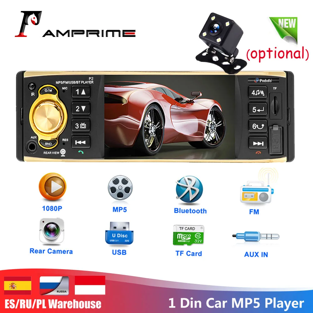 Автомагнитола AMPrime 1 Din, автомагнитола 4,1 дюймов, автомагнитола, стерео радио, FM MP5 плеер, поддержка камеры заднего вида, дистанционное управление 4019B
