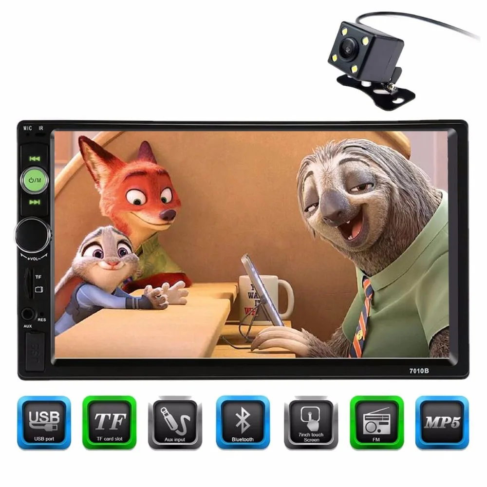 AMPrime 7018B 2 Din автомагнитола с сенсорным экраном, автомобильная стерео MP5 плеер, задняя камера с пультом дистанционного управления, автомобильный мультимедийный плеер