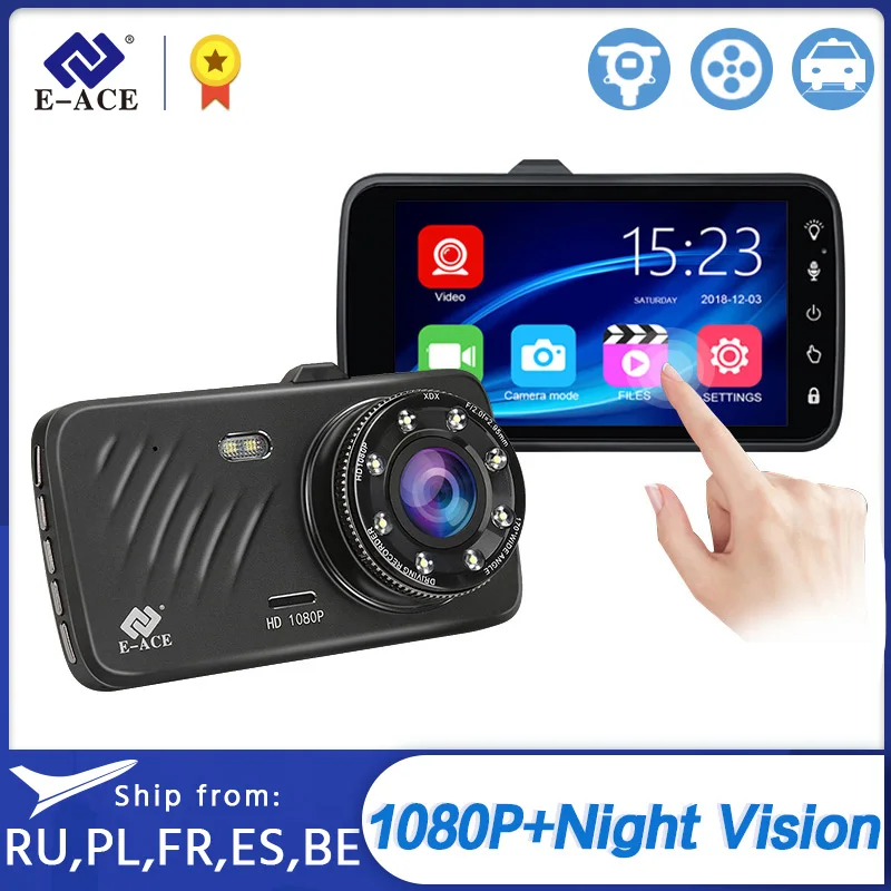 E-ACE Автомобильный видеорегистратор 4,0 дюймов сенсорный видеорегистратор FHD 1080P видео рекордер двойной объектив мини видеорегистратор с камерой заднего вида авто регистратор Dvrs