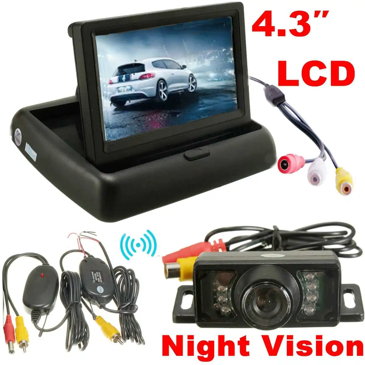 Универсальный автомобильный 4,3 дюймовый ЖК-дисплей 12 В, беспроводная ИК-камера заднего вида, камера заднего вида 120 градусов, резервная каме...