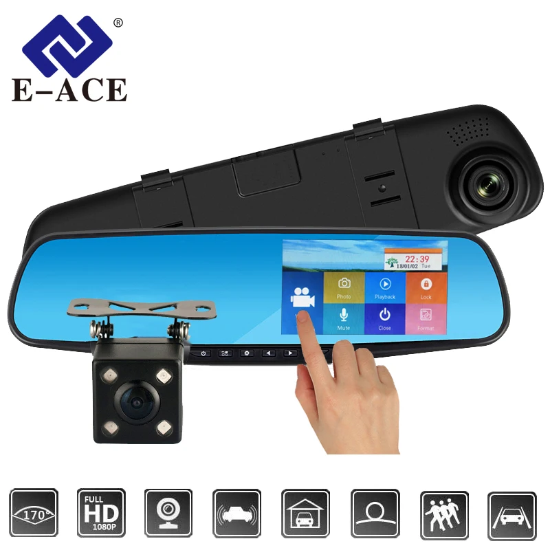 E-ACE Автомобильный Dvr регистраторы 4,3 дюймов Touch FHD 1080 P зеркало заднего вида видео регистраторы двойной объектив Авто регистратор с камера зад...