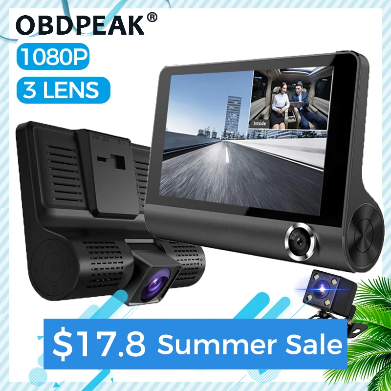 Dash cam 3 камеры s объектив 4,0 дюймов Автомобильный dvr камера 3 объектива с заднего вида видеокамера авторегистратор Full Hd 1080 P русский язык