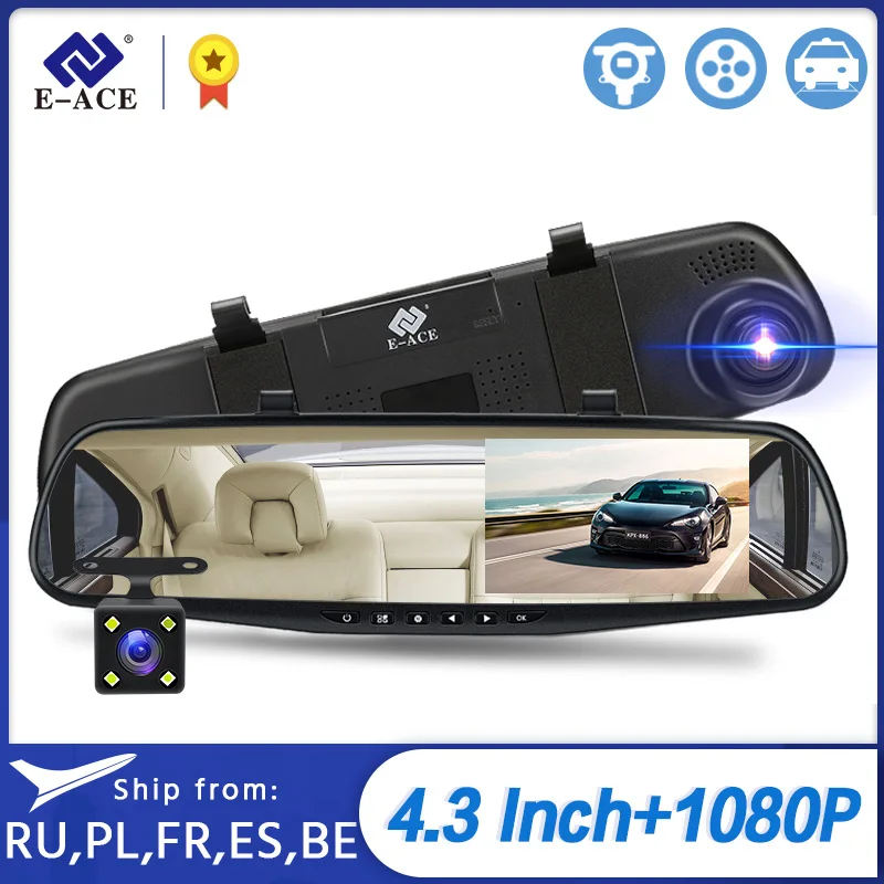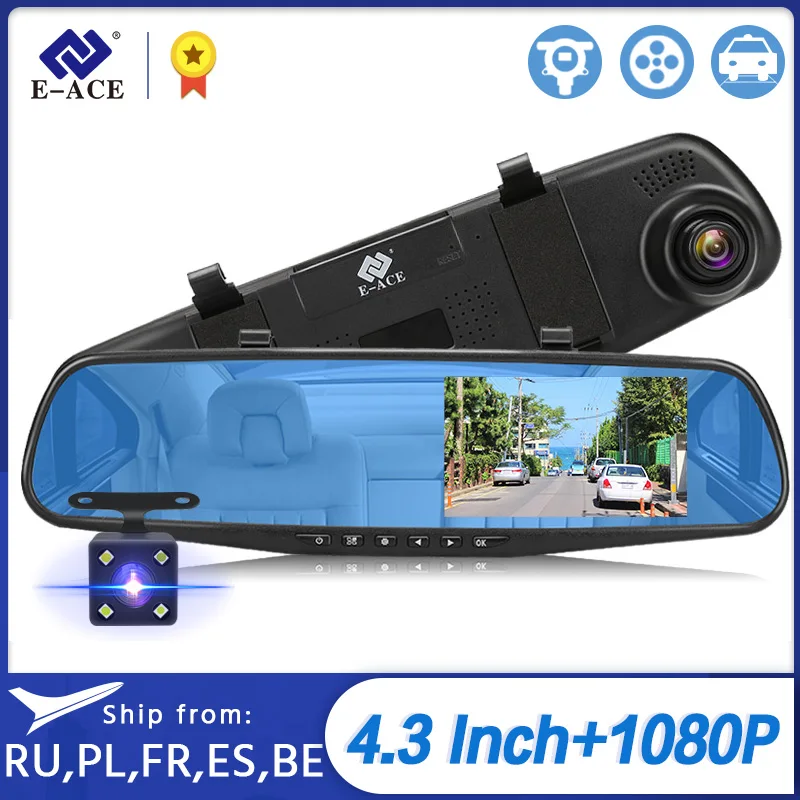 E-ACE Автомобильный видеорегистратор 4,3 дюймов зеркало заднего вида FHD 1080P видеорегистратор Dashcam с камерой заднего вида видеорегистратор Dvrs