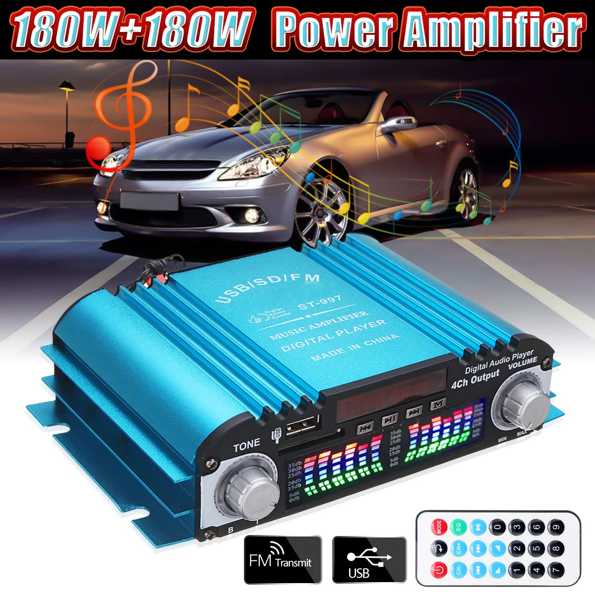 KROAK 360 Вт DC 12 В цифровой аудио стерео усилитель 4CH USB SD FM + пульт Управление мини-автомобиль аудио мощность усилитель