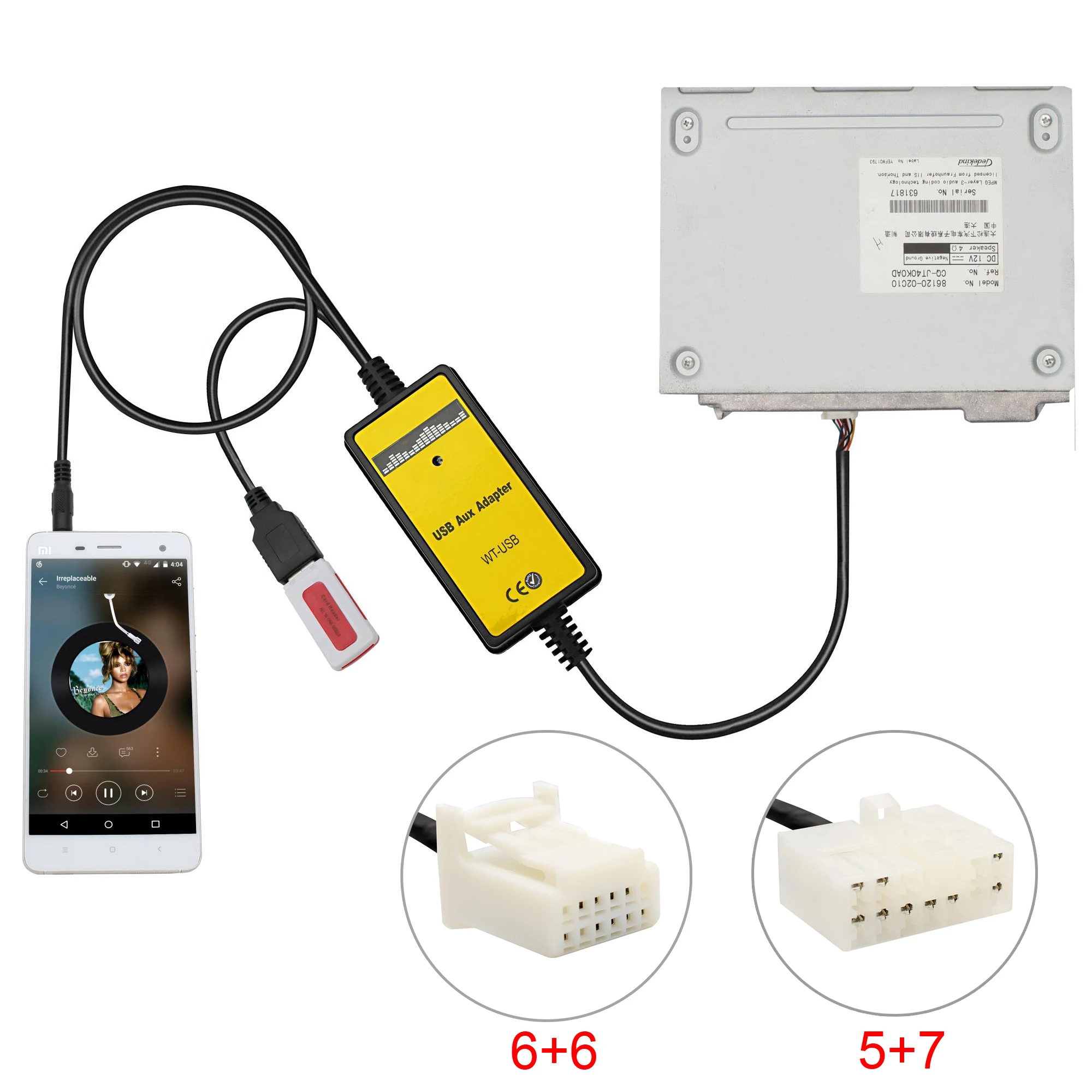 Moonet автомобильный стерео AUX и USB адаптер для Toyota 6 + 6 (для оптовой продажи) QX005/QX018