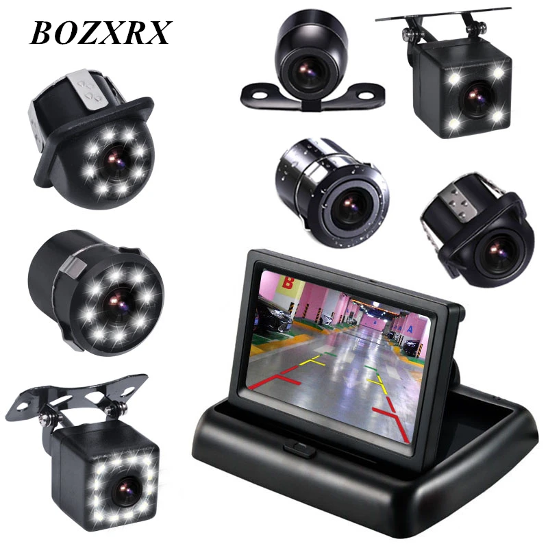 BOZXRX ночь Vison заднего вида камера Авто парковочные системы с 4,3 дюймов цветной ЖК-дисплей автомобиля видео складной монитор комплект