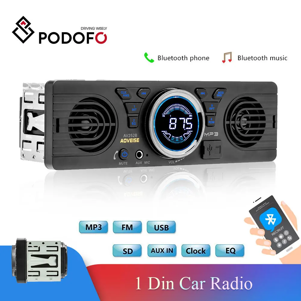 Podofo 1 Din Автомобильный плеер с Bluetooth радио аудиоплеер электроника для транспортных средств в тире MP3 аудио плеер автомобиля стерео FM USB/TF