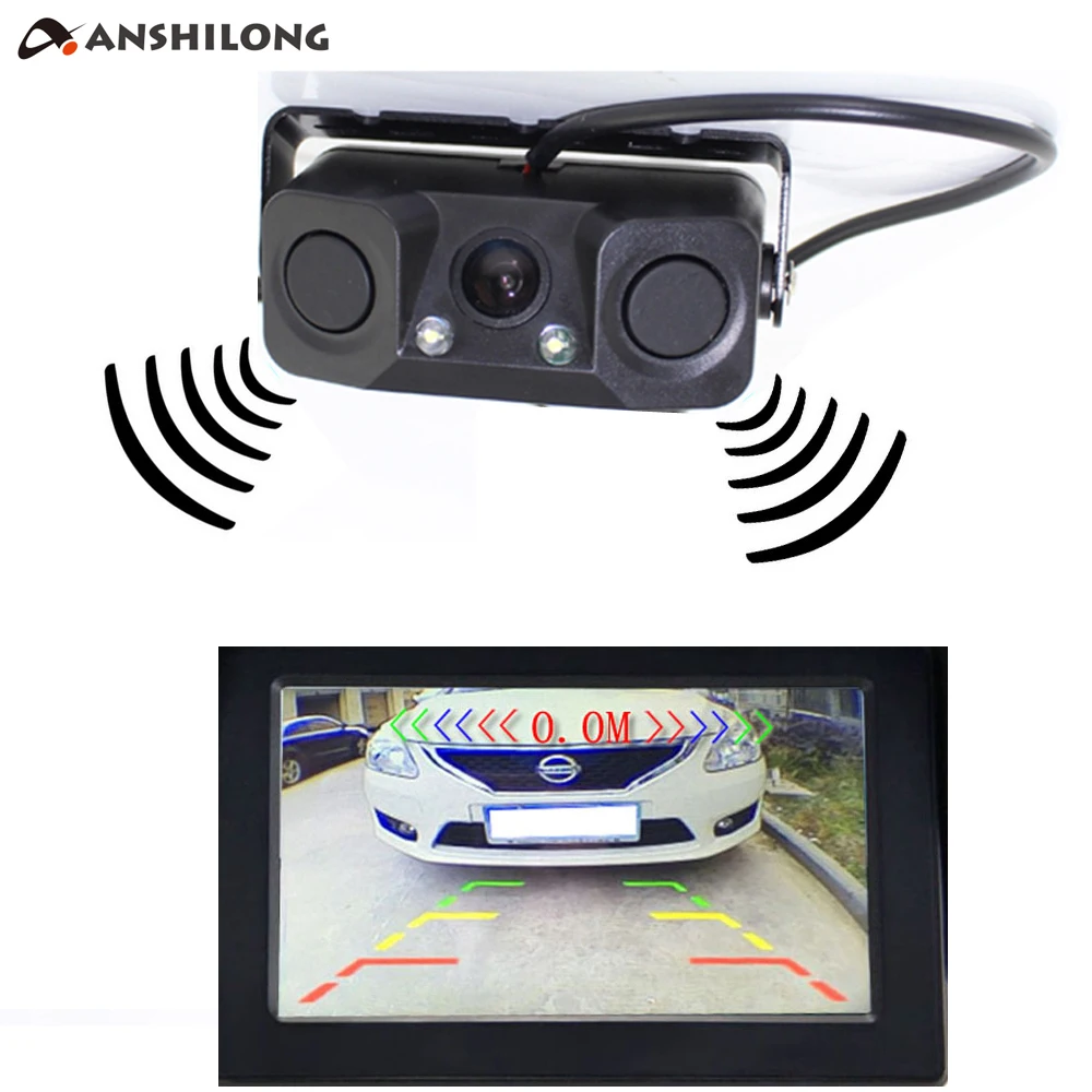 ANSHILONG Авто парктроник видео Датчик парковки Би сигнализация с камерой заднего вида + 2 радар-датчика видео дисплей индикатор