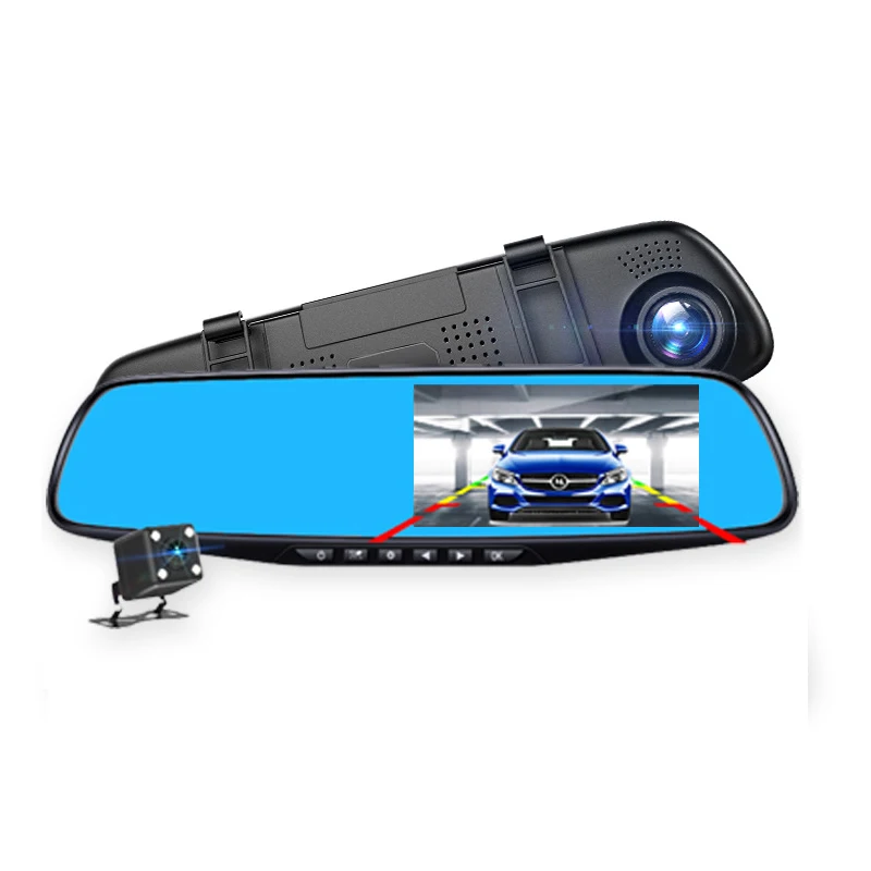 Камера для записывающее устройство для автомобиля Автомобильная камера full hd 4,3 дюймов зеркало заднего вида цифровой видеорегистратор с дво...