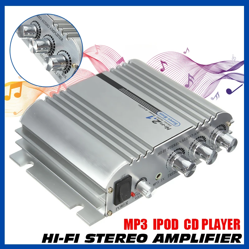 Audew 12 В Hi-Fi стерео аудио 2 + 1 CH Super Bass мотоцикл музыкальный усилитель AMP автомобиль домашний облегченный Алюминий Корпус 161X136X43 мм