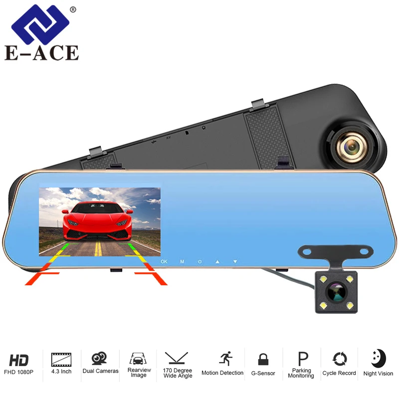 E-ACE 1080 P автомобиль синий зеркало заднего вида камера Dvr Full HD цифровой видеорегистратор с двумя камерами авто тире камерой черный ящик