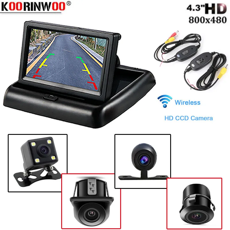 Koorinwoo автомобиль-Стайлинг Беспроводной 4,3 HD складной вид сзади автомобиля монитор заднего Дисплей с резервным заднего Камера для Vehice