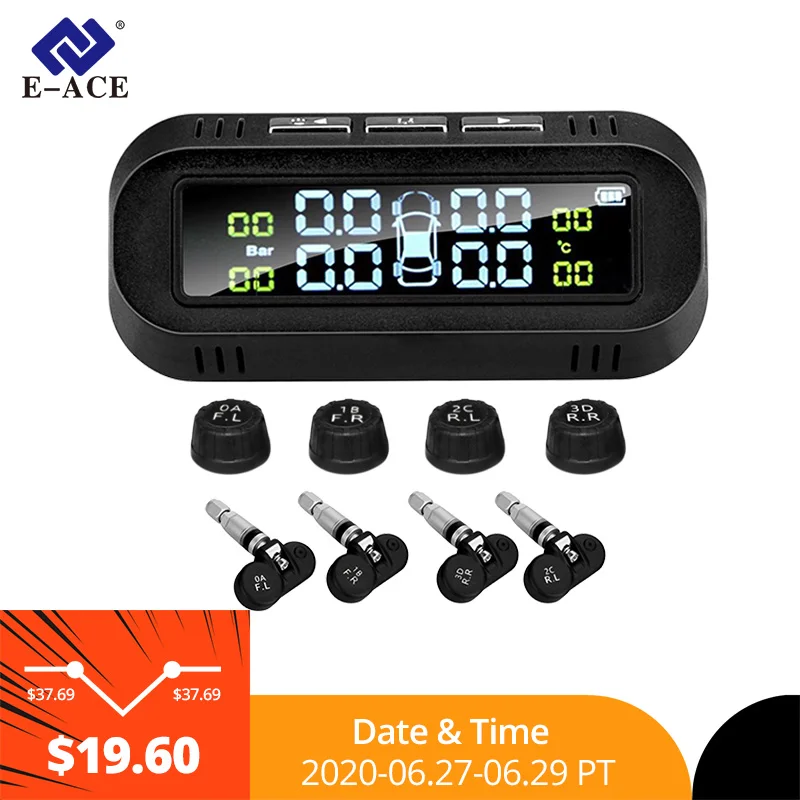 E-ACE Солнечная Умная Система контроля давления в шинах автомобиля шины Давление сигнализации Монитор Системы 4 Датчики Дисплей интеллигента...