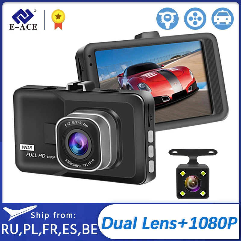 E-ACE мини Видеорегистраторы для автомобилей Камера 3 дюймов видео Регистраторы регистратор FHD 1080P Dash Cam авторегистратор Двойной объектив с за...