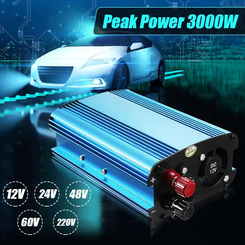 KROAK автомобильный инвертор 3000 Вт DC 12 V/24 V/48/60 V до 220V Солнечный Мощность преобразователь для автомобильных поездок отдых на открытом воздухе а...