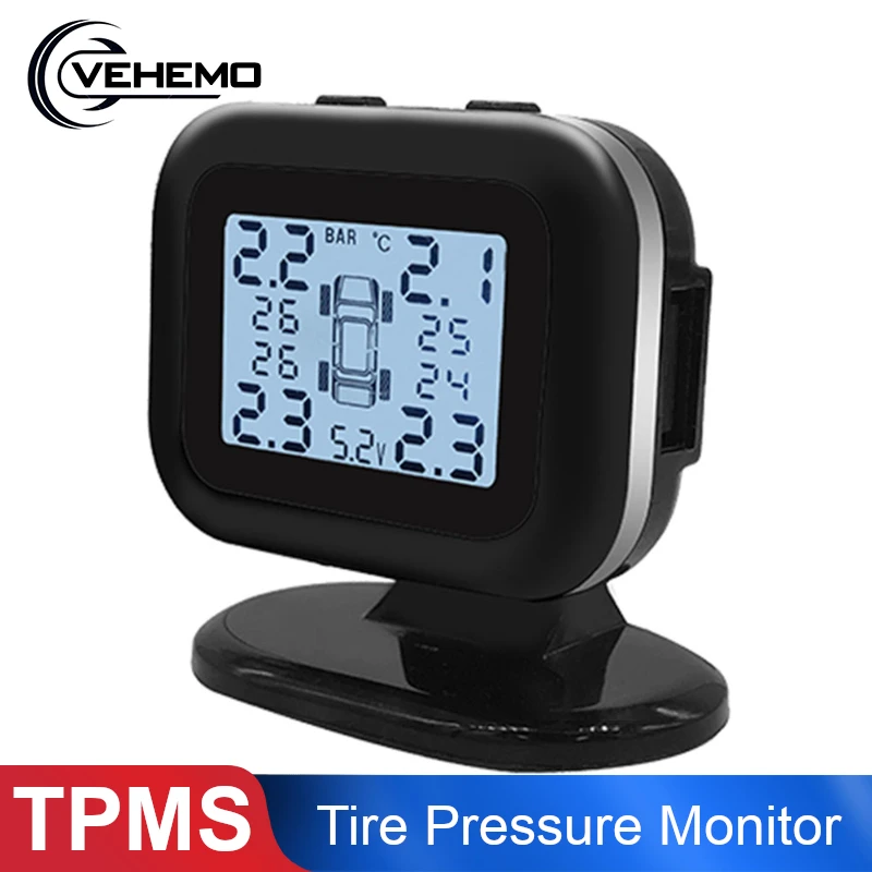 Vehemo система контроля давления в шинах автомобильные транспортные средства 5 В USB TPMS 4 шт. датчик в режиме реального времени ЖК-дисплей цветно...