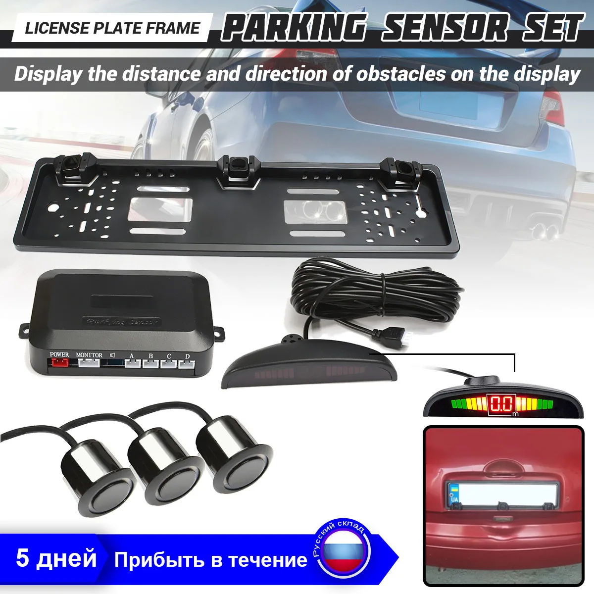 Универсальный Автомобильный авто парктроник СВЕТОДИОДНЫЙ парковочный радар Датчик системы с монитором дисплей 4 датчика ЕС Лицензия тарел...