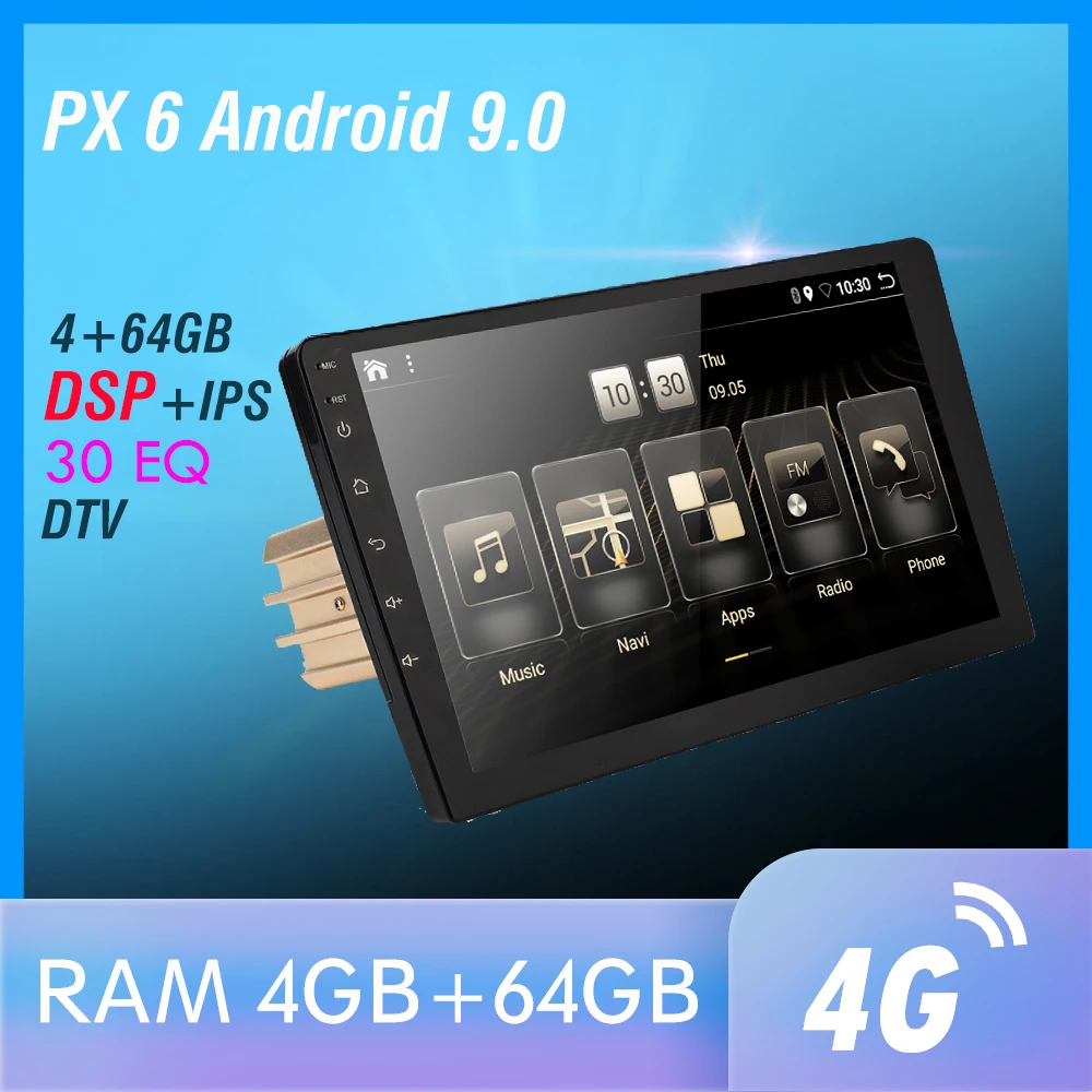 2 din Android 9,0 Восьмиядерный PX6 автомобильный Радио Стерео gps Navi Аудио Видео плеер блок ПК Wifi BT HDMI AMP 7851 OBD DAB + SWC 4G + 32G