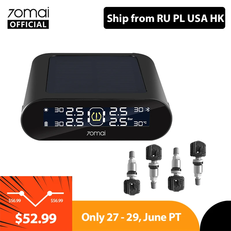 70mai tpms система контроля давления в шинах английское приложение Солнечная энергия USB tmps 70 mai автомобильные датчики давления в шинах Система сигнализации