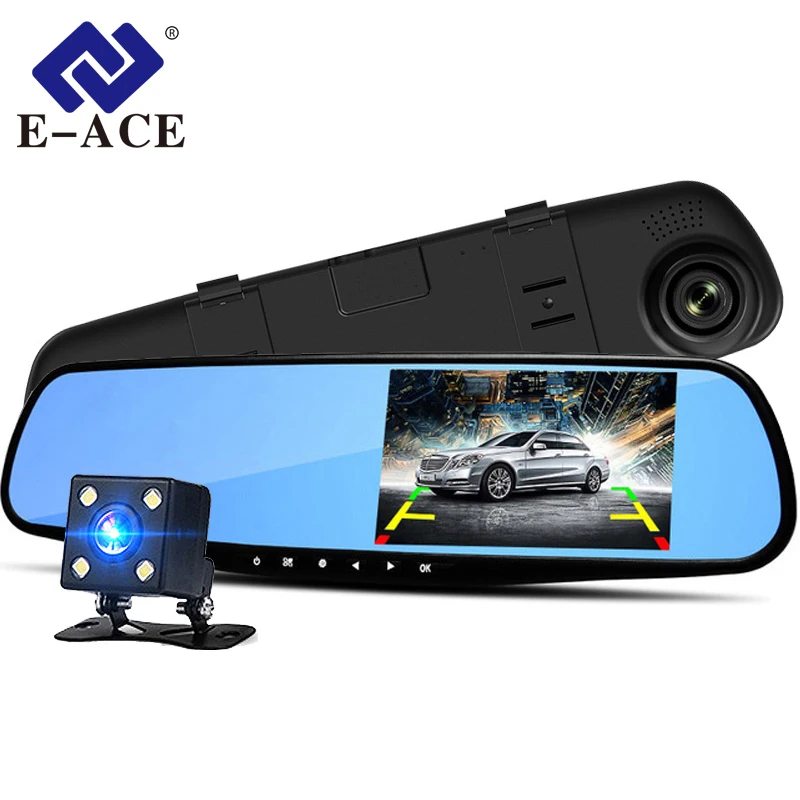 E-ACE 4,3 дюймов Автомобильный dvr камера Full HD 1080 P автоматическая камера зеркало заднего вида с DVR и камерой Авто регистратор, видеорегистратор а...