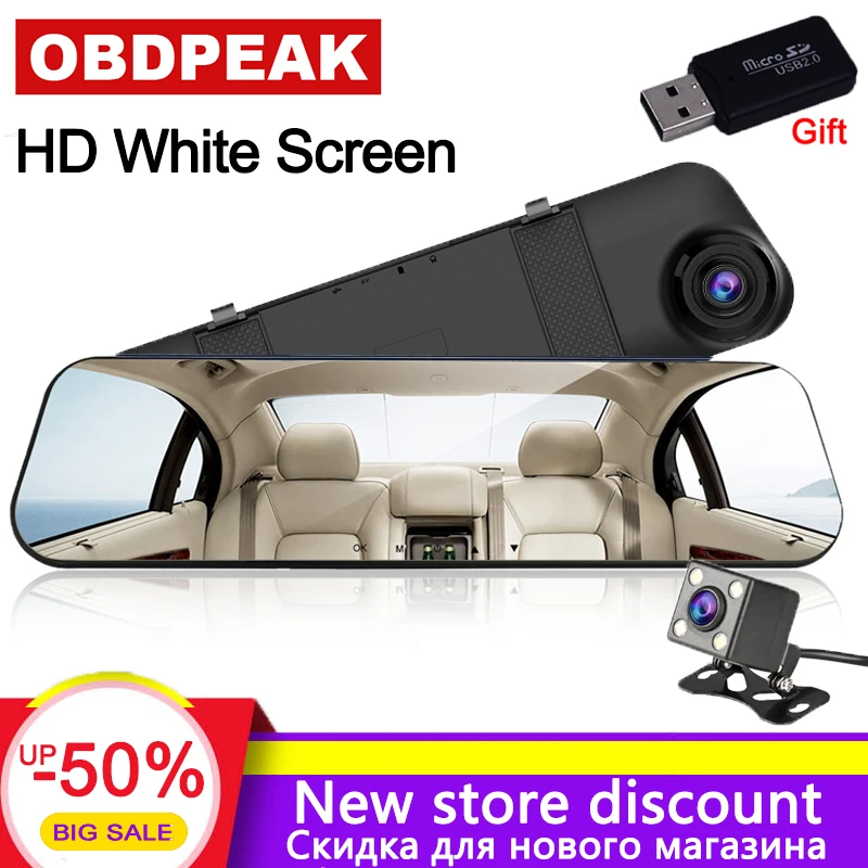 Addkey Авто 4,3 дюймов Зеркало заднего вида видеорегистратор Цифровой Видео Регистраторы Двойной объектив регистрационная видеокамера FHD 1080P а...