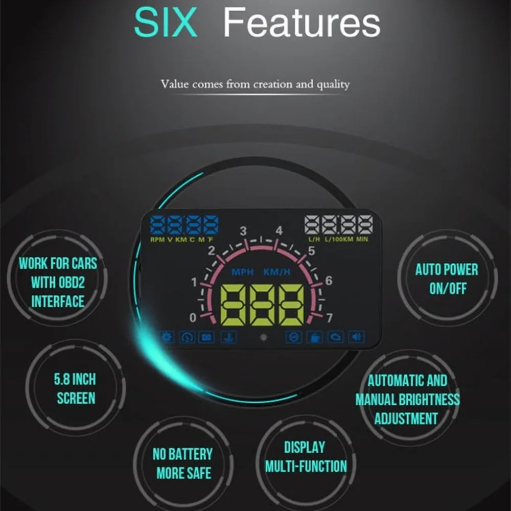 5,8-дюймовый OBD II универсальный Hud Дисплей лобовое стекло проектор Hud проектор OBD2 EUOBD вождение автомобиля Скорость метр