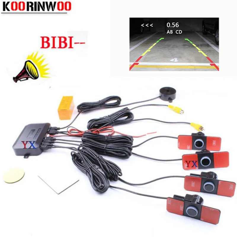 Koorinwoo оригинальный парктроник двухъядерный Видео парковочный датчик 4 резервный радар сигнализация система звуковая видео система видимое...