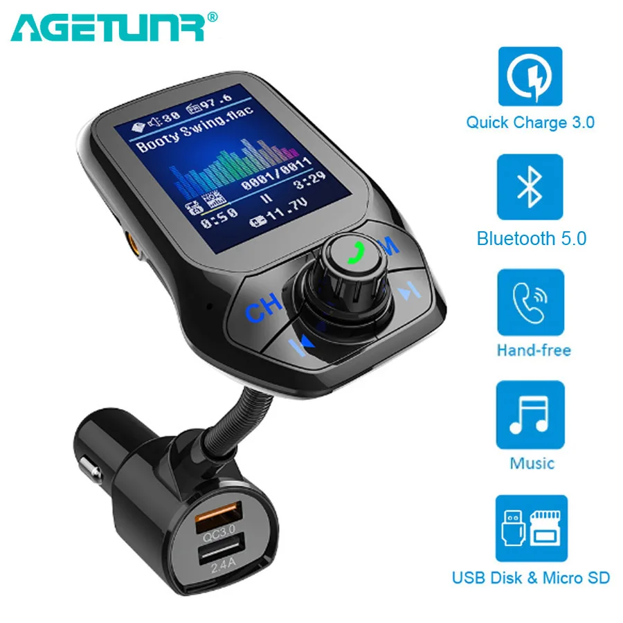 Bluetooth 5,0 FM передатчик автомобильный AUX USB MP3 плеер беспроводной автомобильный комплект громкой связи с QC3.0 Быстрая зарядка 3 USB порта автомобильное зарядное устройство