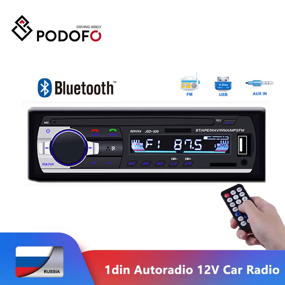 Podofo 1din Авторадио 12 В автомобиля Радио Bluetooth стерео плеер AUX-IN MP3 FM/USB в тире Car Audio Remote Управление телефон Зарядное устройство