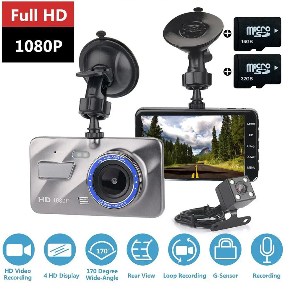 4 дюйма HD Двойной объектив Поддержка изображение заднего вида 1080P Скрытая Широкий формат вождения Регистраторы Dashcam Видеорегистраторы для автомобилей Камера встроенный гравитационный Сенсор