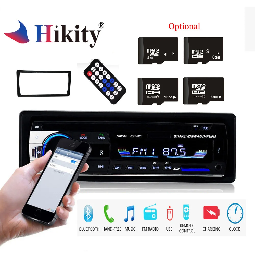 Hikity 1 Din JSD-520 Bluetooth радио SD MP3 плеер автомагнитолы стерео FM/USB/Радио пульт дистанционного управления для телефона Car Audio