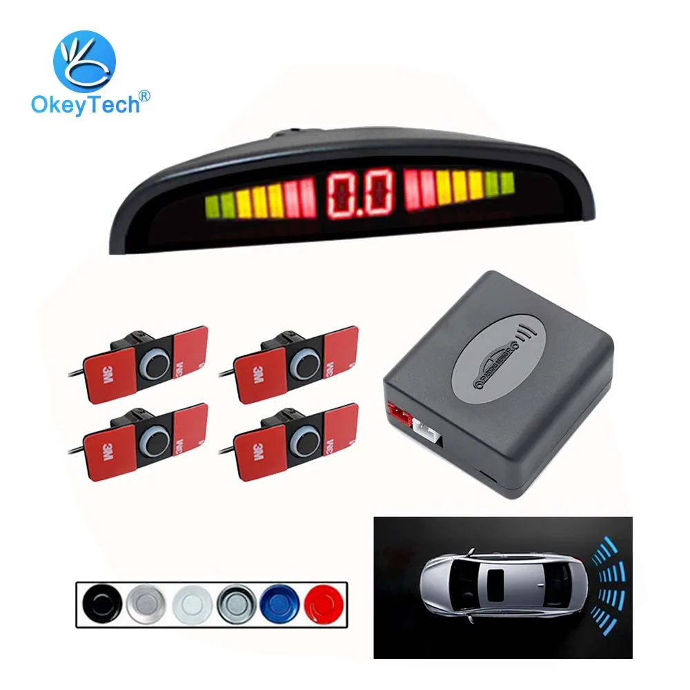 OkeyTech Авто парковочный радар для автомобиля светодиодный парковка Сенсор 4 Сенсор s обратный резервный Парковка радар-детектор монитор Сист...
