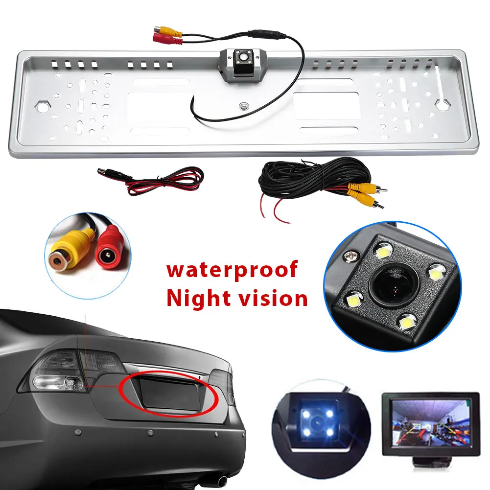 Европейский автомобильный номерной знак рамка с заднего вида Камера HD 4 светодиодных ночного Автомобильная камера заднего вида резервного ...