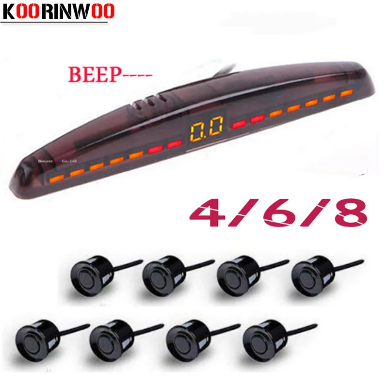 Koorinwoo электромагнитных светодио дный парковка Сенсор 4/6/8 радарами Звук оповещения Индикатор зонды Системы 12 V парктроник черный серый