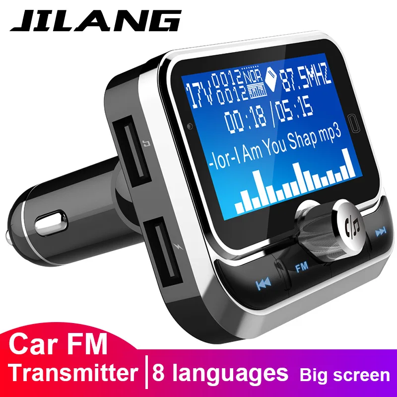 Jilang Цвет Экран автомобиля MP3 аудио FM передатчик Беспроводной Bluetooth Handsfree Car Kit 360 Вращающийся с QC3.0 двойное зарядное устройство usb
