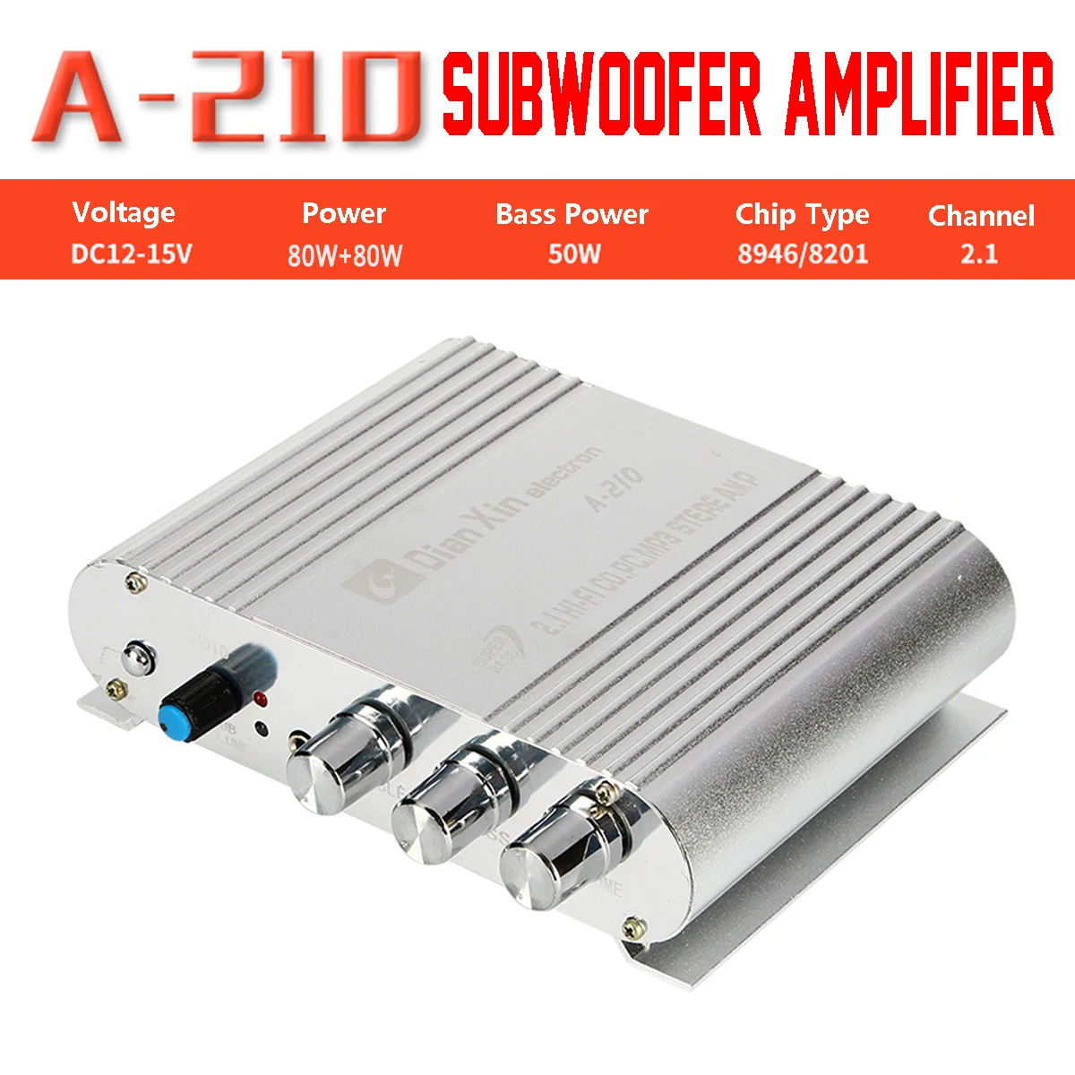 Hi-Fi автомобилей канальный усилитель мощности 12V 2.1CH 210W Динамик Автомобиль Мотоцикл бас аудио Мощность усилитель Hi-Fi MP3 аудио стерео DX-210