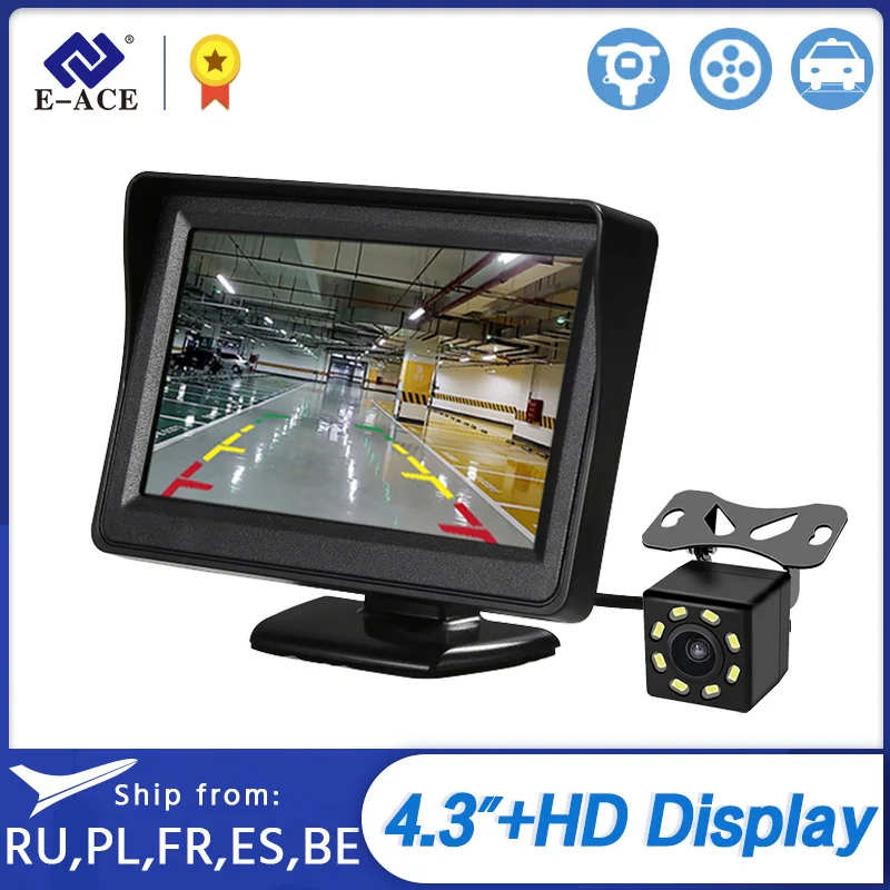 Монитор для автомобиля/грузовика E-ACE J01, 4,3-дюймовый TFT ЖК-экран с автоматической камерой заднего вида для парковки