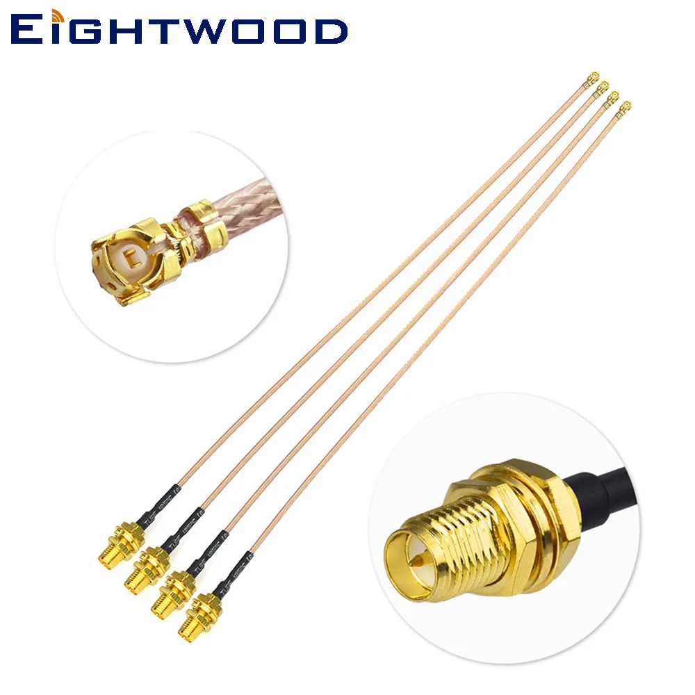 Eightwood RF U. FL (IPEX/IPX) Mini PCI для RP-SMA женский Пигтейл/провод для антенны Wi-Fi коаксиальный RG178 кабель с низким уровнем потерь 30 см набор из 4