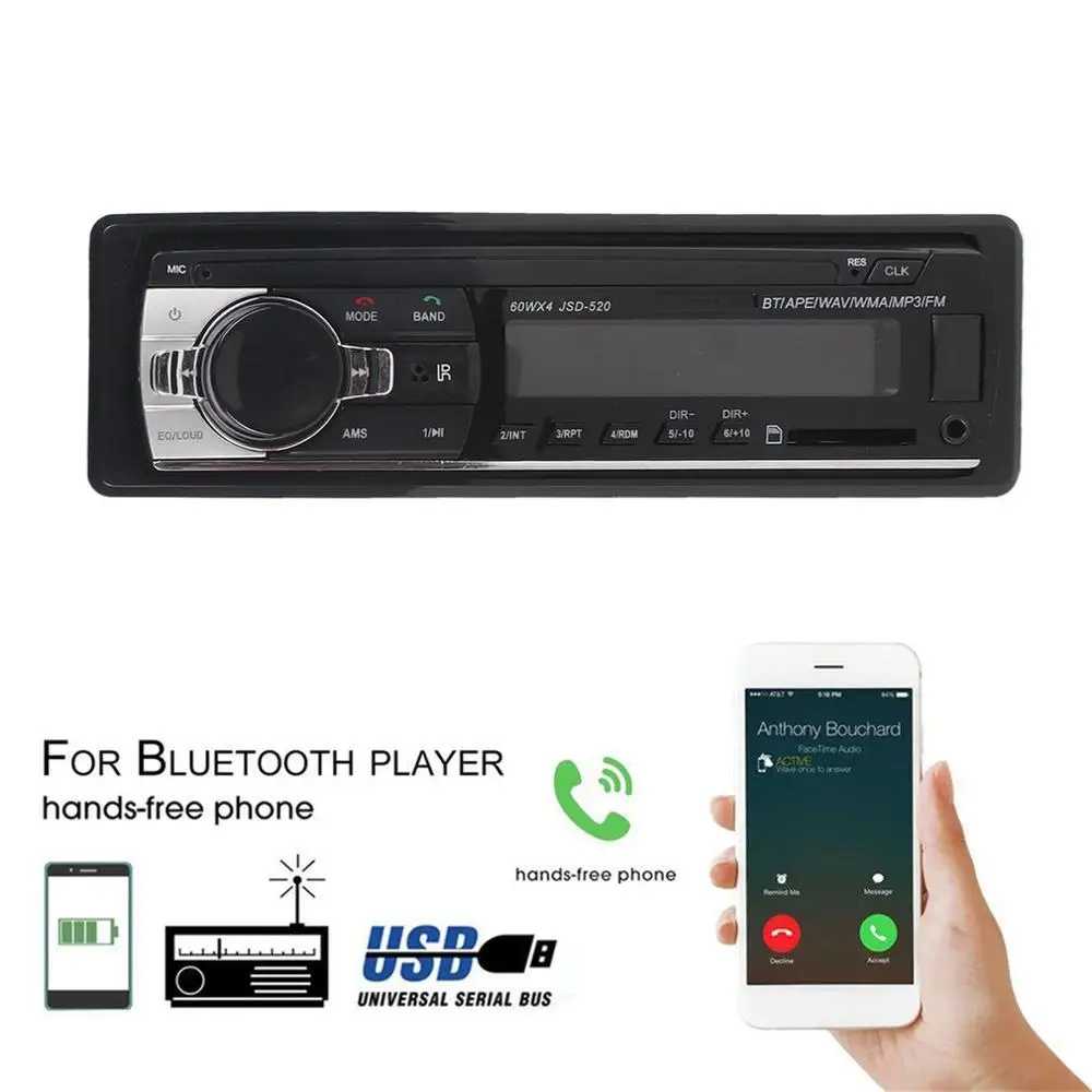 JSD-520 автомобильное радио стерео музыкальный плеер телефон MP3 Пульт дистанционного управления 12 в автомобильное аудио Автомобильное музыкальное устройство