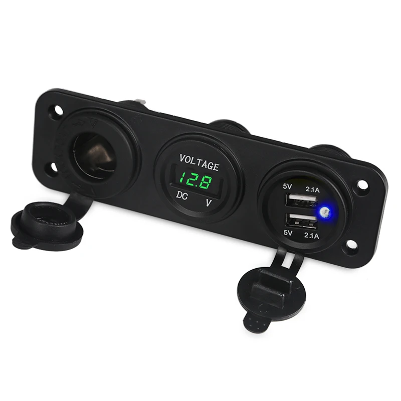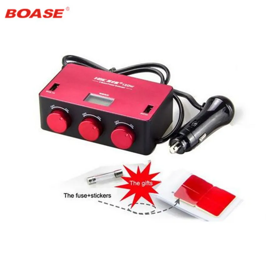 Автомобильного прикуривателя Зарядное устройство 12 В/24 В 3-Way Splitter независимым переключатель 120 Вт Dual USB с Батарея Напряжение в реальном врем...