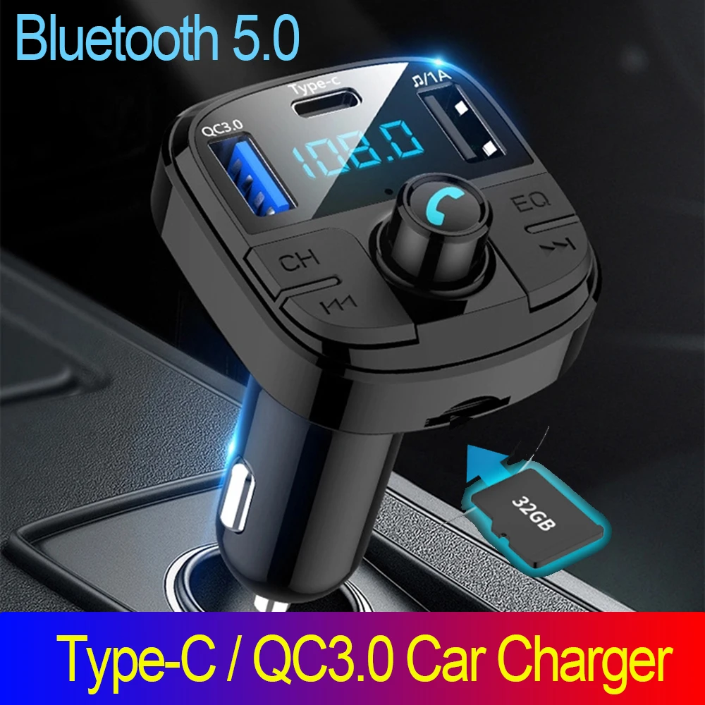 JINSERTA, новинка 2020, тип-c, FM трансимтер, автомобильный Bluetooth 5,0, MP3 плеер, QC3.0, двойное зарядное устройство USB, TF, USB флешка, музыкальный плеер