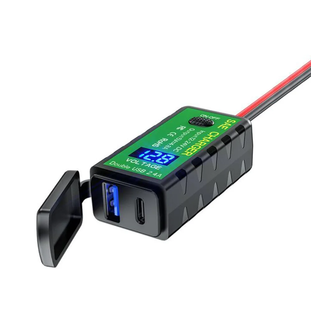 DC12V-24v type c adapter motorcycles USB 5v 4.5a with volmeter to sae connector with 1.6 meter cable for car boat RV