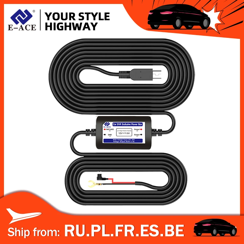 E-ACE Buck Line 3,5 м Мини возможных трансформатор для Dashcam Напряжение от 12 В до 5 В пост 0.5A-2A автомобиля Зарядное устройство для автомобиля Dvr с автоматической зарядкой