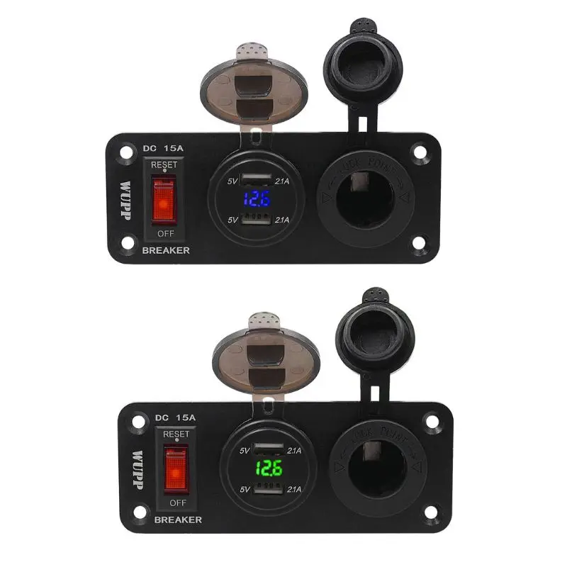 Водонепроницаемый 12 в 24 В Лодка Грузовик Автомобиль светодиодный вольтметр 2.1A двойной usb-порт для зарядки прикуривателя розетка панель с 15A вкл.